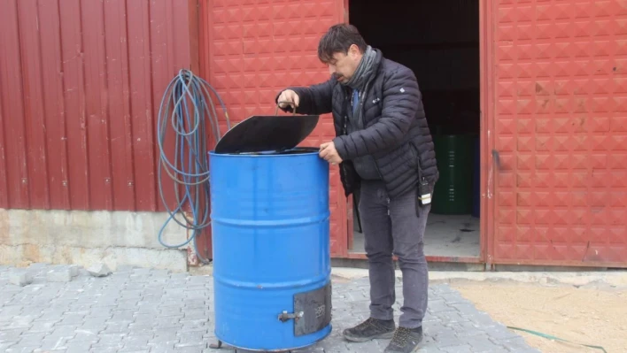 Bayramiç'te saç bidonları sobaya dönüştürülerek, deprem bölgesine gönderiliyor