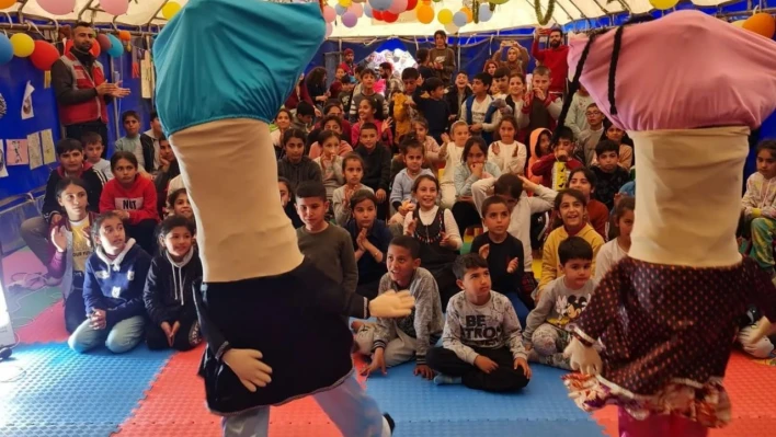 Şehr-i Bingöl Tiyatrosu ekibi, depremin vurduğu Adıyaman'da çadır kenti ziyaret ederek çocukları eğlendirdi.