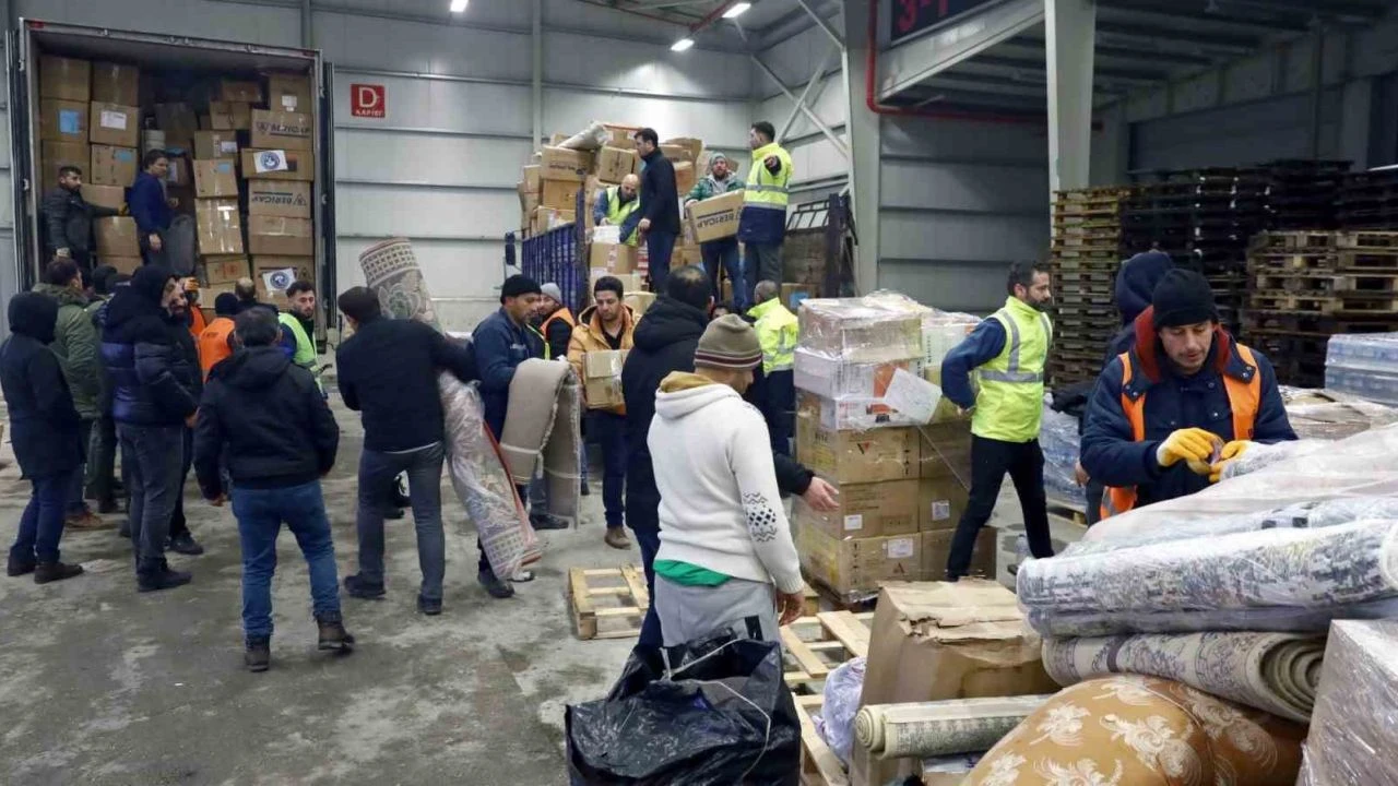 Bursa Büyükşehir Belediyesi koordinasyonunda belirlenen yardım toplama merkezleri, depremin yaşandığı ilk günden itibaren adeta bir fabrika gibi çalışıyor. Yardım fabrikasının gönüllü işçileri, yine gönüllüler tarafından getirilen tüm yardım malzemelerini tek tek sınıflandırıyor, koliliyor ve tırlara yükleyip afet bölgesine gönderiyor.