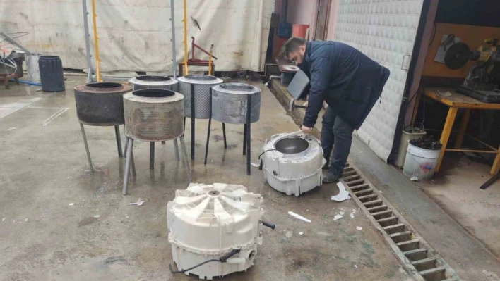 Çaycuma'da eski çamaşır makinesinden soba ürettiler