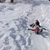 Yazıhan ilçesinde kar kalınlığının yer yer yarım metreyi bulmasıyla birlikte ilçeye bağlı Böğürtlen Mahallesi’nde karı fırsata çeviren çocuklar, soğuk havaya aldırış etmeden tepsi ve bidon gibi buldukları malzemelerle kayarak doyasıya eğlendi.