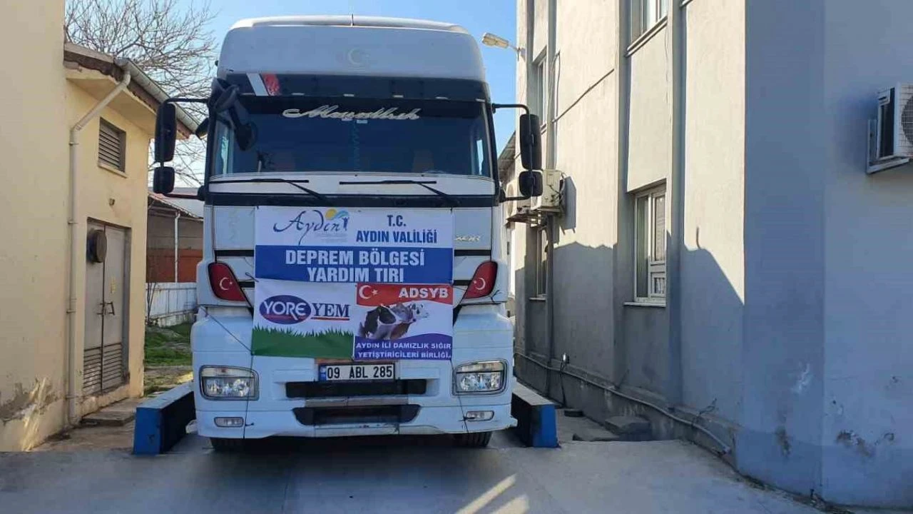 Aydın’da hayvancılıkla uğraşan üreticiler ve birlikler tarafından deprem bölgesindeki hayvan işletmelerine yönelik hazırlanan yem desteğinde ikinci tır da dualarla yola çıktı.
