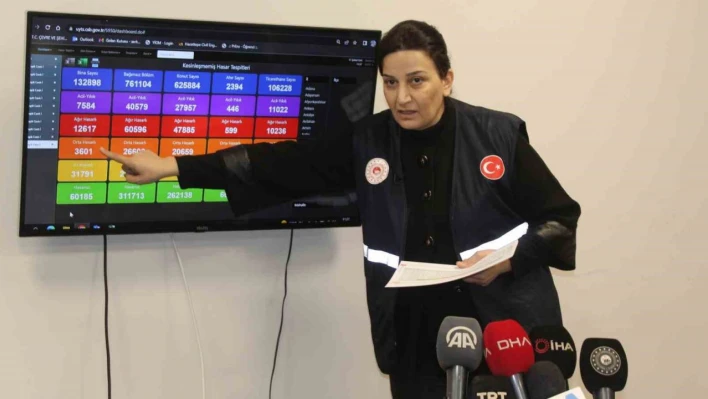 Çevre, Şehircilik ve İklim Değişikliği Bakanlığı Yapı İşleri Genel Müdürü Banu Aslan, Kahramanmaraş merkezli depremlerle ilgili 10 ilde başlayan ve yüzde 35'i tamamlanan hasar tespit çalışmalarında 7 bin 854 yıkık ya da acilen yıkılması gereken bina, 12 bin 617 binanın ağır hasarlı ve oturulamaz halde olduğunun belirlendiğini söyledi.