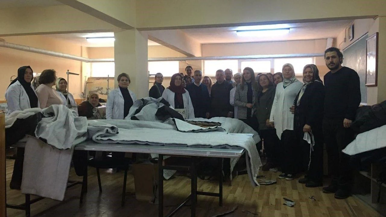 Isparta İl Milli Eğitim Müdürlüğü tarafından depremzedeler için eksi 20 dereceye kadar dayanıklı uyku tulumu dikimine başlandı.