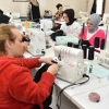 Kartepe’de meslek edindirme kurslarında eğitim alan kadınlar, depremzedelerin üşümemesi için kıyafet dikiyor.