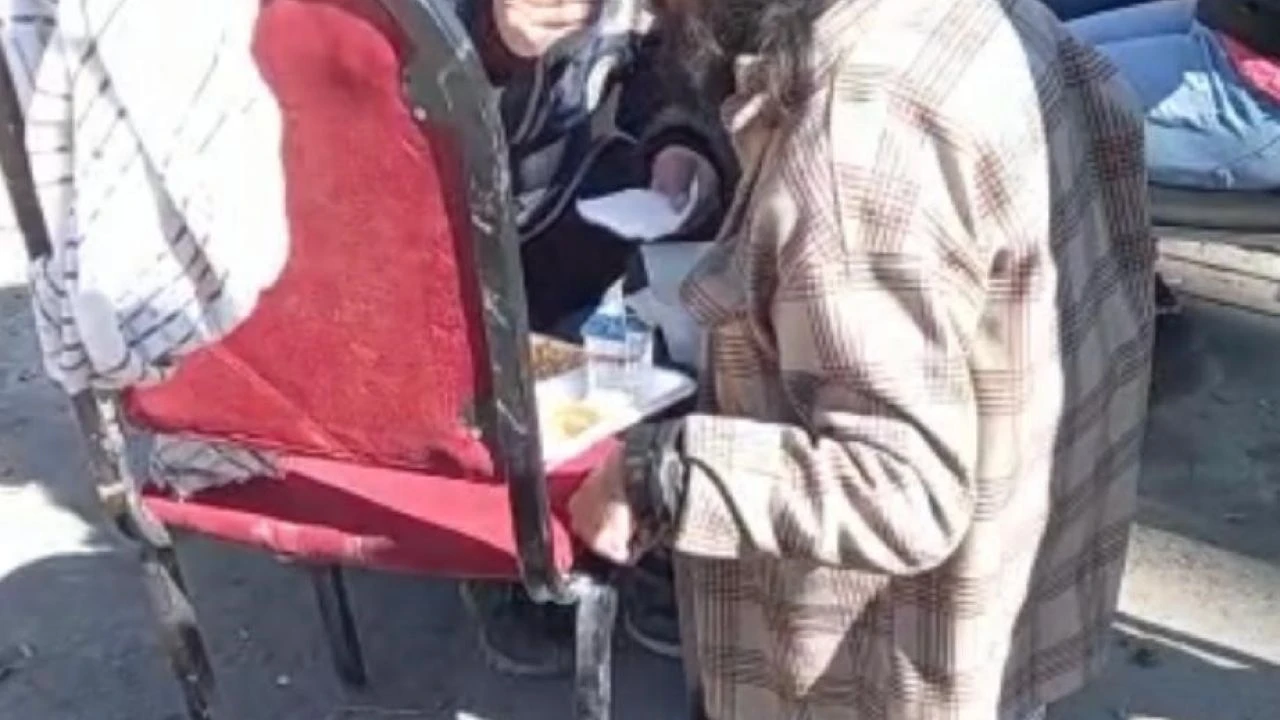Polis memuru, engelli vatandaşa elleriyle yemek yedirdi. O anlar, bir vatandaşın cep telefonu kamerasına yansıdı.