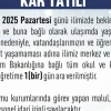 Elazığ Valiliği’nden yapılan açıklamada, "29 Aralık 2025 Pazartesi günü ilimizde beklenen yoğun kar yağışı ve buna bağlı olarak ulaşımda yaşanabilecek buzlanma nedeniyle, vatandaşlarımızın ve öğrencilerimizin mağduriyet yaşamaması adına ilimiz merkez ve ilçelerinde Milli Eğitim Bakanlığına bağlı tüm okul ve kurumlarda eğitim ve öğretime 1 gün ara verilmiştir. Ayrıca, kamu kurumlarında görev yapan malul, engelli ve hamile personel idari izinli sayılacaktır" denildi.