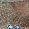 Elazığ’da etkili olan sağanak yağış sonrasında istinat duvarı çöktü.