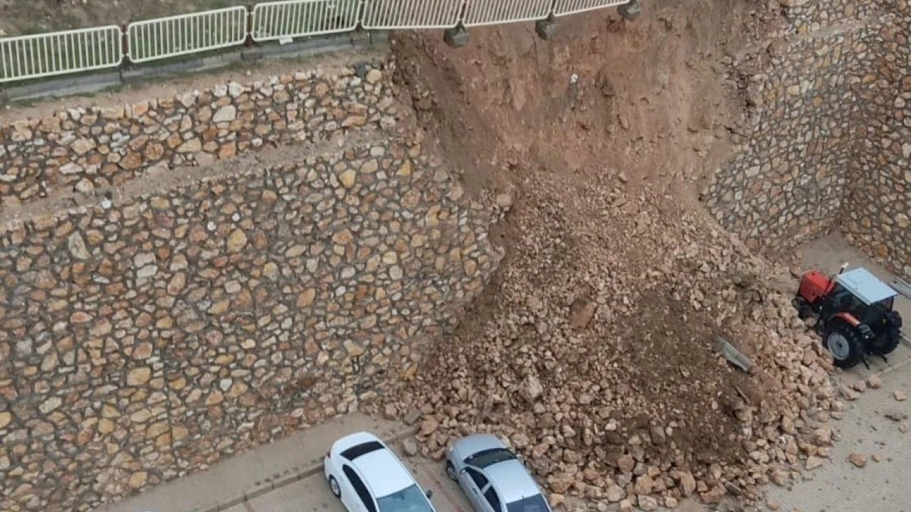 Elazığ'da etkili olan sağanak yağış sonrasında istinat duvarı çöktü.