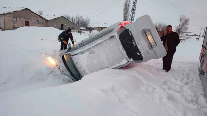 Elazığ'da karda kayan hafif ticari araç devrildi: 2 yaralı