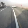 Olay, Elazığ-Alacakaya yolunda meydana geldi. Edinilen bilgiye göre, sürücüsü öğrenilemeyen otomobil, virajda iş makinesi taşıyan tırı sollamaya çalıştı. Karşı şeritten gelen kamyonu son anda fark eden otomobil, yoldan çıkarak stabilize yola girdi. Sürücünün manevrası ile kaza atlatıldı. Araç içi kamerasına yansıyan görüntülerde, iki sürücünün de ani fren yaparak muhtemel bir facianın önüne geçtiği görülüyor.