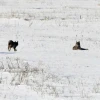 Bölgede etkili olan kar yağışı sonrası doğada yiyecek bulmakta zorlanan vaşak ailesinin köy kırsalına kadar indiği görüldü. Bir süre kar üzerinde ilerleyen vaşaklar, daha sonra gözden kayboldu.
