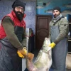Elazığ'da yakalanan 78 kilogram ağırlığındaki turna balığını iki kişi zor taşıdı