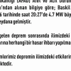 Elazığ Valiliğinden yapılan açıklamada, "İçişleri Bakanlığı Afet ve Acil Durum Yönetimi Başkanlığı’ndan alınan bilgiye göre; Baskil ilçemizde 3 Ocak 2026 tarihinde saat 20.27’de 4.7 büyüklüğünde deprem meydana gelmiştir. Meydana gelen deprem sonrasında ilimizdeki AFAD, 112 ihbar hatlarına herhangi bir hasar ihbarı yapılmamıştır. Bütün birimlerimiz depremin ilimizdeki etkilerini yakından takip etmektedir" denildi.