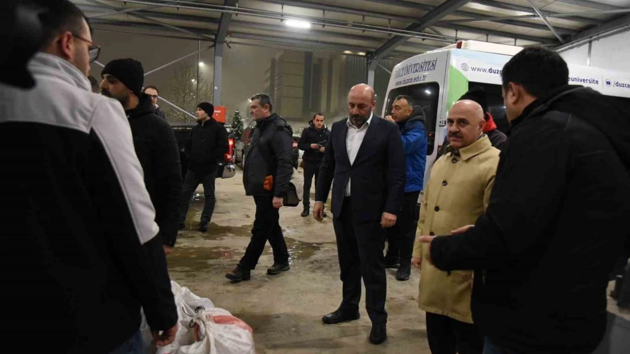 Düzce Üniversitesi Rektörü Prof. Dr. Nedim Sözbir, Elbistan’a gitmek üzere yola çıkan gönüllü Düzce Üniversitesi ekibini uğurlayarak çalışmalarında başarı ve kolaylıklar diledi.