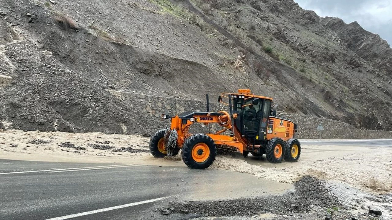 Ulaşıma kapanan yolun açılması için Karayolları 117. Şube Şefliği ekipleri çalışma başlattı. Trafik ekipleri de bölgede güvenlik önlemi aldı.