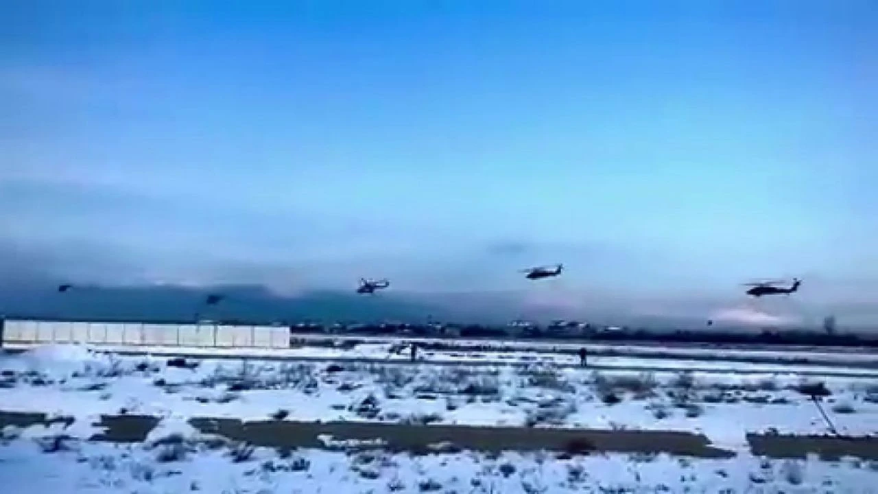 Helikopterler peş peşe böyle havalandı, askeri gören köylüler onlara sarıldı