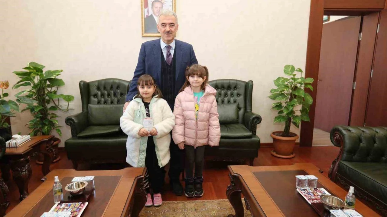 Eskişehir’de öğrenim gören ilkokul öğrencileri Mihrimah Demir ve Eslem Kocayıldız, biriktirdiği 210 TL harçlığı depremzedelere göndermesi için Vali Ayyıldız’a teslim etti.