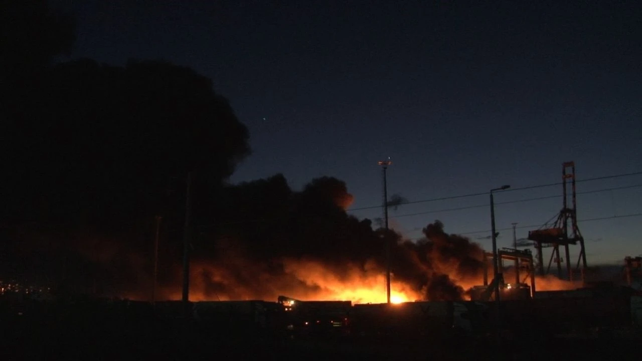 Dün Kahramanmaraş merkezli depremlerin ardından İskenderun Limanı’nda konteynerlerin devrilmesi sonucu yangın çıkmıştı. Kontrol altına alınamayan yangına yangın söndürme helikopteri ile müdahale ediliyor.