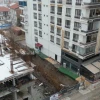 İstinat duvarı çöken bina havadan görüntülendi
