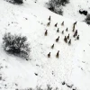Kar üzerinde yiyecek arayan dağ keçileri dron ile görüntülendi