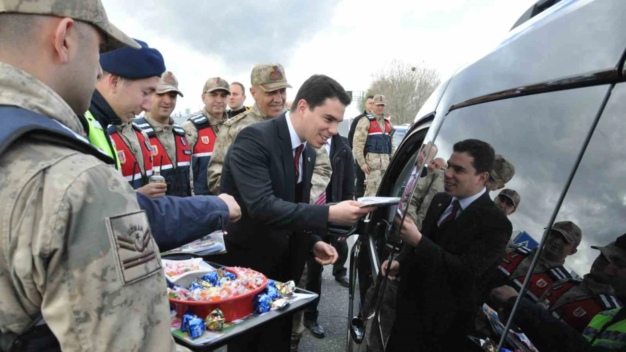 Vali Vekili Muhammed Furkan Tuna, beraberindeki İl Emniyet Müdürü Yavuz Sağdıç ve İl Jandarma Komutanı Albay Hıdır Ayçiçek ile birlikte kent giriş ve çıkış noktalarında görevli polis ve jandarma ekiplerini ziyaret etti. Tuna, polis ve jandarma uygulama noktalarındaki yol uygulamalarına da katılarak, sürücülerin ve yolcuların bayramlarını kutladı. Tuna, “Bu mübarek günde vatandaşlarımız huzur ve güven içerisinde olsunlar, sağlıklı, huzurlu bir bayram geçirsinler diye tedbirlerimizi aldık. Gerek kolluk güçlerimiz, gerek diğer kamu kurum ve kuruluşlarımız bu bayramda vatandaşlarımızın huzuru için elinden gelen gayreti gösteriyor” dedi.