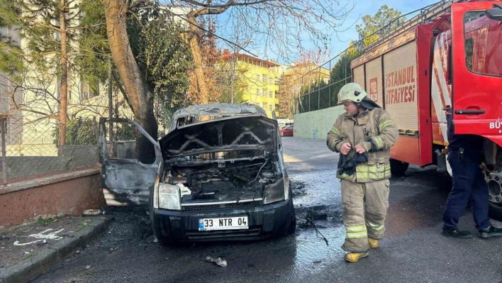 Kartal'da hafif ticari araç alev alev yandı. Sürücü ve yolcu ise yanan araçtan son anda kurtuldu.