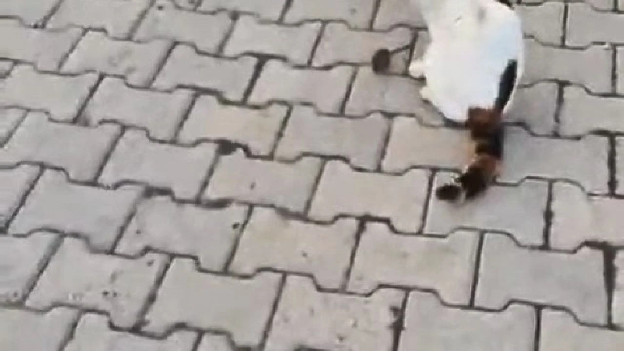 Elazığ'da kedinin fareyle oyunu bir vatandaşın cep telefonu kamerasına yansıdı.