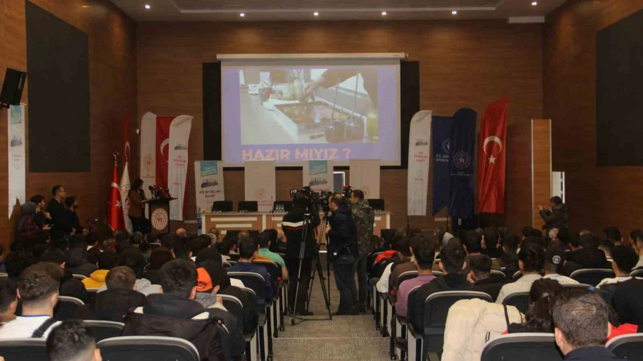 Erzurum'da Kış Sporları Kampı Açılış programı gerçekleştirildi. Açılışta protokol üyeleri ve öğrenciler yer aldı.