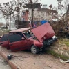 Kontrolden çıkan araç kaldırıma çıkıp ağacı yerinden söktü