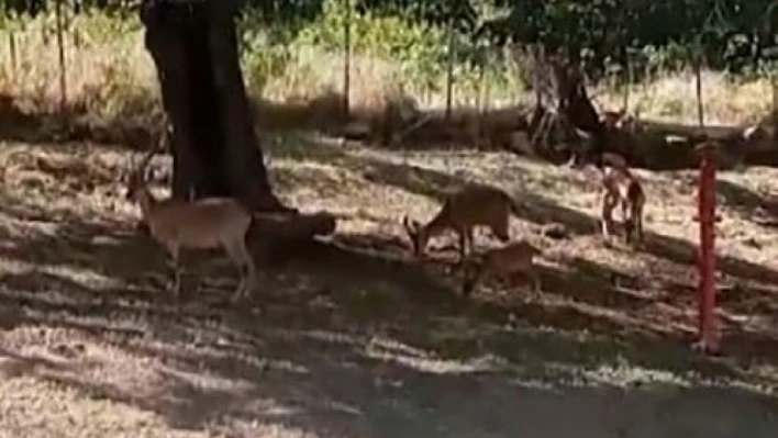 Tunceli'de bir köye sürü halinde inen koruma altındaki yaban keçileri görüntülendi.