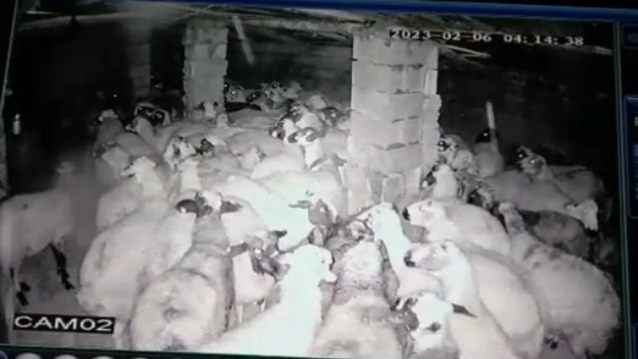 Kahramanmaraş depreminin hissedildiği Şanlıurfa'nın Siverek ilçesinde, ahırdaki koyunların depreme tepkisi güvenlik kamerasına yansıdı. Korku dolu anlar saniye saniye kaydedildi.