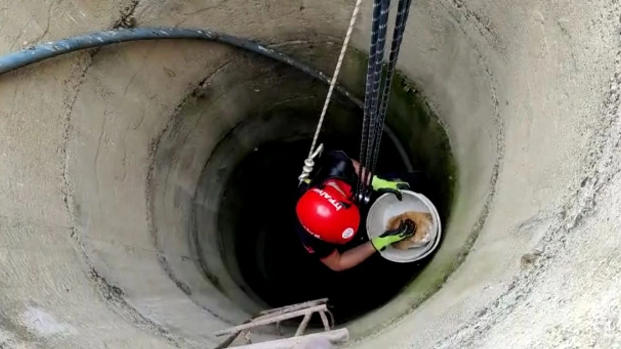 Kuyuya düşen kedinin imdadına itfaiye yetişti