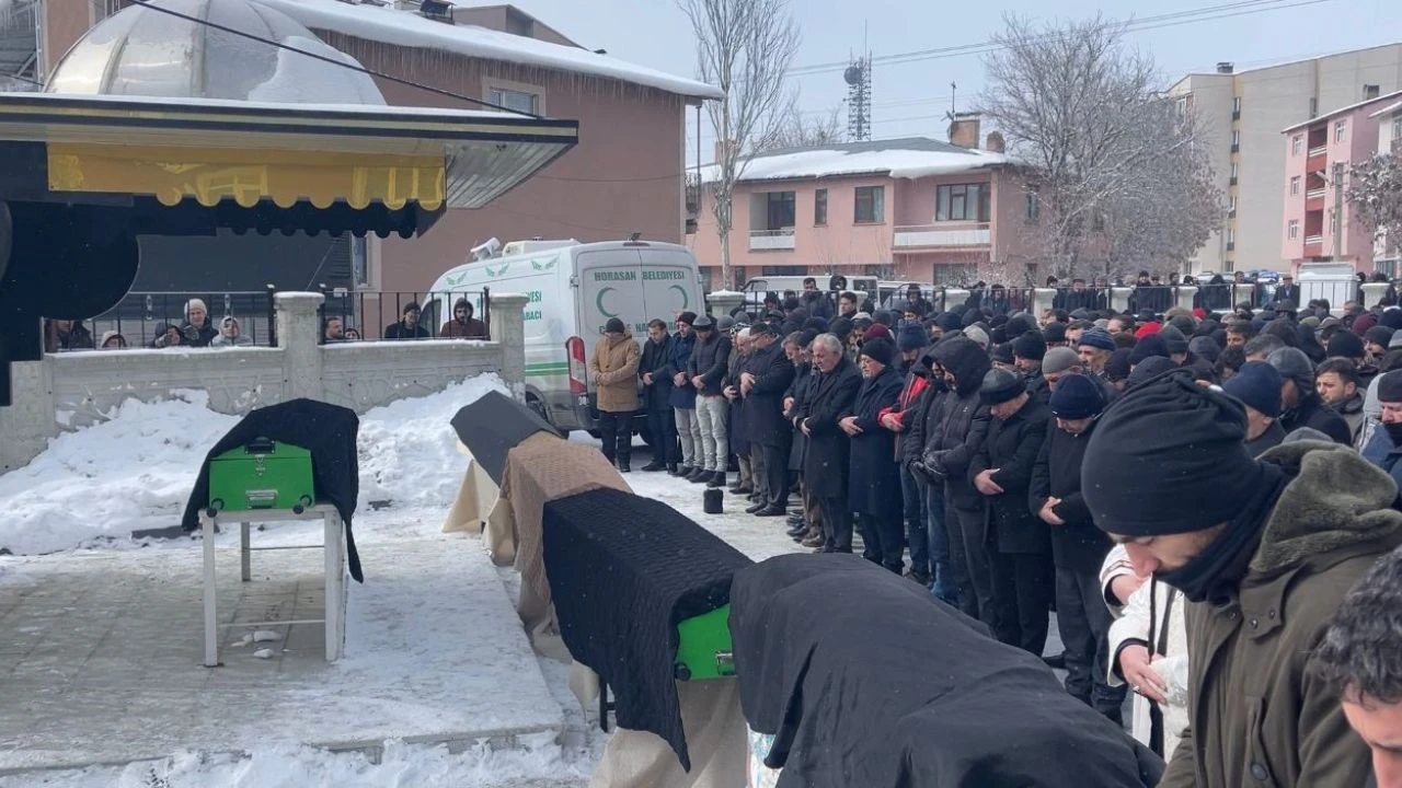 Kahramanmaraş'ta enkaz altında kalarak hayatını kaybeden 5 kişilik Eren ailesi memleketleri Erzurum'un Horasan ilçesinde toprağa verildi.