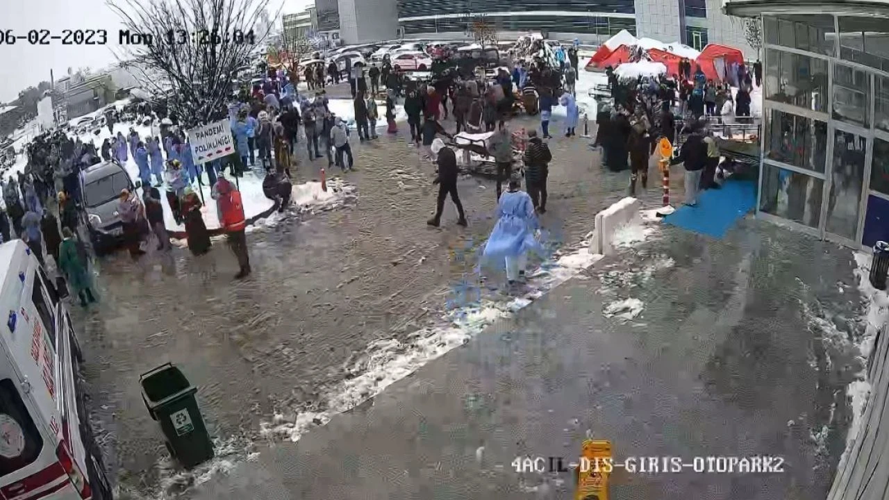 Malatya’da 6 Şubat 2023’te gündüz saatlerinde meydana gelen deprem sırasında, hastanede bulunan sağlık çalışanları ile vatandaşların sarsıntıyla birlikte büyük korku yaşadığı görüldü. Görüntülerde, depremin başlamasıyla birlikte hastane içerisinde kısa süreli panik yaşandığı, bazı vatandaşların bulundukları alanları terk etmeye çalıştığı, hastane çalışanlarının ise canlarını hiçe sayarak hastaları güvenli alanlara çıkarmak için büyük bir özveriyle mücadele ettiği anlar yer aldı.