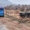 Malatya’da sürücüsünün kontrolünden çıkan kamyon önce park halindeki araca daha sonra ise bariyerlere çarparak devrildi. Kazada 1 kişi yaralandı.