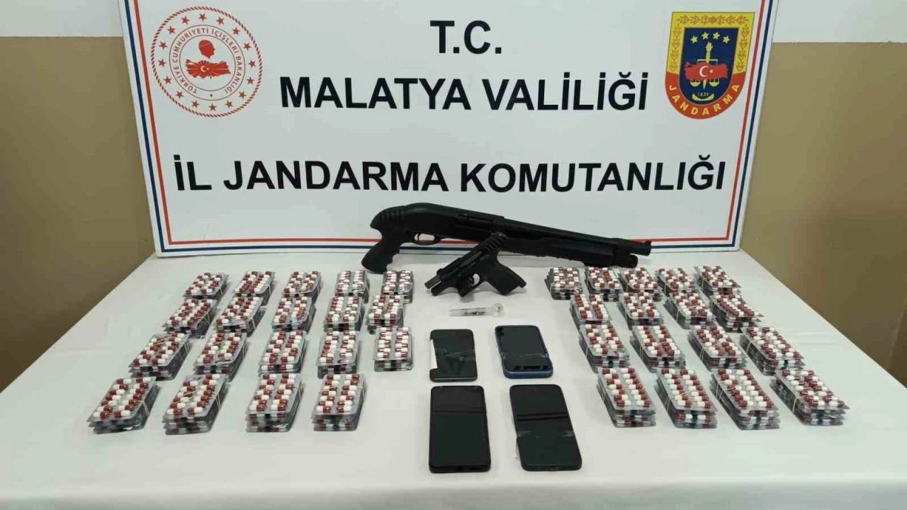 Malatya’da jandarma tarafından düzenlenen operasyonda sentetik hap ve silahlar ele geçirildi, 4 kişi gözaltına alındı.
