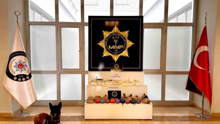 Edinilen bilgiye göre Muş Emniyet Müdürlüğü’ne bağlı Narkotik Suçlarla Mücadele Şube Müdürlüğü ekipleri, şehrin girişindeki polis kontrol noktasında uygulama yaptığı sıra şüphelendikleri bir otomobilde arama yaptı. Aile süsü verilen ve yoğun biber kokusunun geldiği otomobilde yapılan kaba aramada bir şeye rastlamayan polis, narkotik köpeği Thor ile arama yaptı. Thor’un araması sonucu 25 paket halinde toplam 13 kilo eroin maddesi ile 12 paket halinde toplam 5 kilo 900 gram Metamfetamin ele geçirildi. Olayla ilgili otomobil sürücüsü ve yanındakiler gözaltına alınarak adli işlemler başlatıldı.
