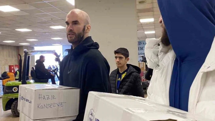 Fenerbahçeli basketbolcular Nick Calathes ve Scottie Wilbekin, Ülker Stadyumu'ndaki yardım merkezine gelerek çalışmalara destek oldu.