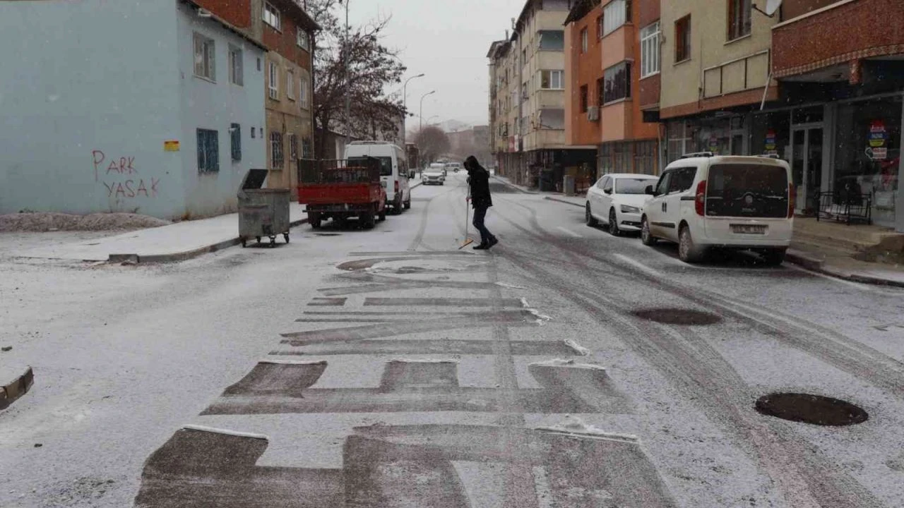 Oltu ilçe merkezine yılın ilk karı yağmaya başladı