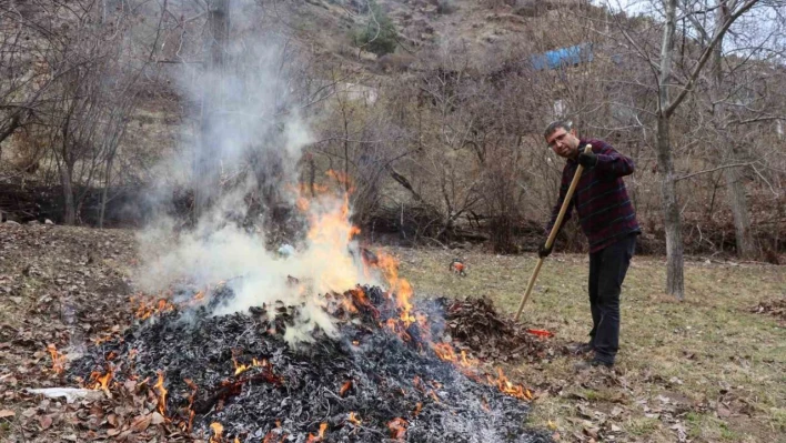 Ormanağzı köyü Pokens Mahallesi sakinlerinden Ömer Aydın, "Bahçemizde bahar temizliği yapmaktayım. Ağaçlarımız yaprak açmak üzere, biz de kenar köşesinin temizliğini yapıyoruz" dedi.