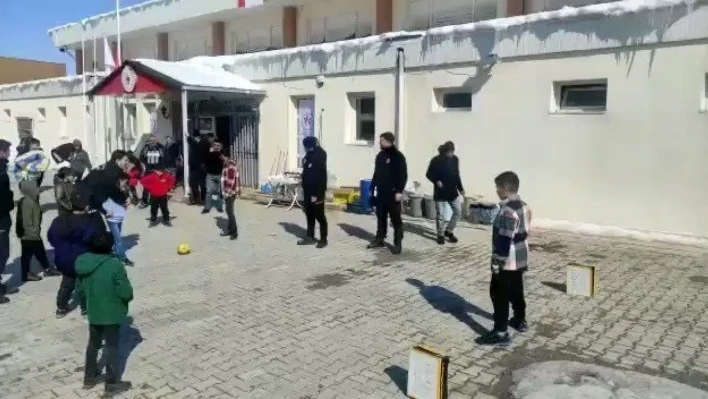 Erzincan Emniyet Müdürlüğünde görevli polisler deprem afeti yaşayan çocuklara bir nebze moral kazandırabilmek için onlarla top oynadı.