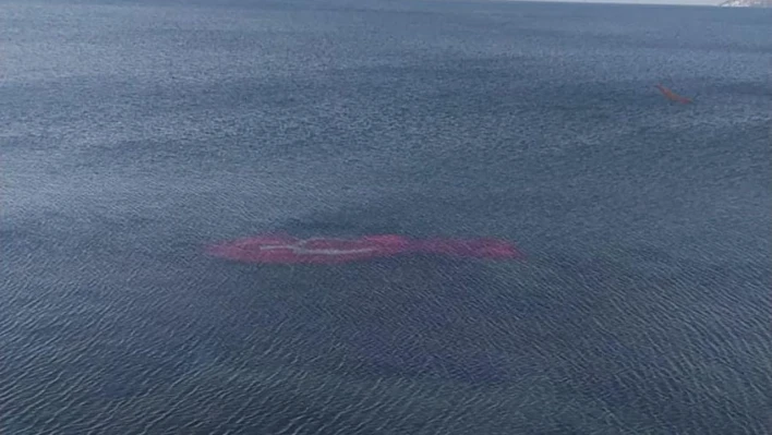 Rüzgarda Van Gölü'ne düşen dev Türk bayrağı Sahil Güvenlik ekiplerince çıkarıldı