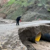 Sağanak yağış nedeni ile tahrip olan yol ve menfezler onarılıyor