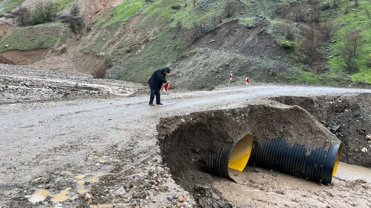 Elazığ'da etkili olan sağanak yağış nedeni ile tahrip olan yol, köprü ve menfezler onarılıyor.