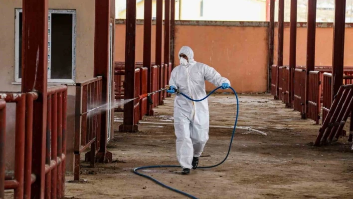 Van Büyükşehir Belediyesi, şap hastalığına karşı canlı hayvan pazarını detaylı temizleyerek ilaçlama çalışması yaptı.