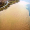 Bitlis'in Ahlat ilçesinde sel sonrası dere yataklarından dökülen sular Van Gölü'nü kahverengiye boyadı. Göl üzerinde oluşan görüntü havadan görüntülendi.