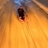 Elazığ'da kar üzerinde eğlenmek isteyen şahıslar, ATV araçla şişme botu çekmeye başladı. Hıza dayanamayan botun üzerindeki şahsın bir süre sonra düştüğü anlar kameraya yansıdı.