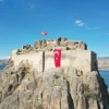 Tunceli’nin Pertek ilçesinde Keban Baraj Gölü üzerinde yer alan tarihi Pertek Kalesi, 29 Ekim Cumhuriyet Bayramı dolayısıyla anlamlı bir etkinliğe ev sahipliği yaptı. Kalenin bulunduğu adada restorasyon çalışmalarını sürdüren işçiler, Cumhuriyetin 102. yılı anısına kalenin surlarına 50 metrekarelik dev bir Türk bayrağı astı. İşçilerin kendi inisiyatifleriyle gerçekleştirdiği bu anlamlı davranış, adadaki tüm ekip tarafından gururla karşılandı.