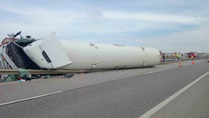 Tekirdağ'da doğalgaz yüklü tanker devrildi: 1 yaralı